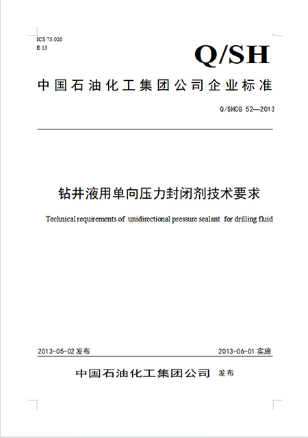 鉆井液用單向壓力封閉劑(Q/SHCG52-2013)